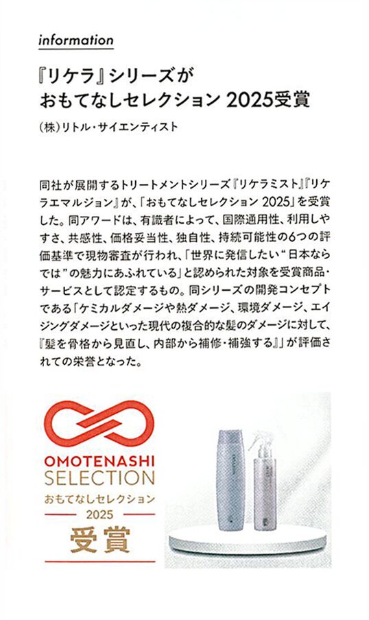 リケラミスト・リケラエマルジョンが受賞の栄誉にあずかりました。